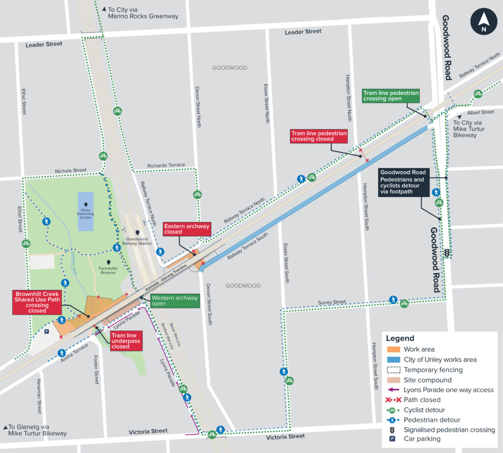 Many in the community would also have noted the partial opening of the widened archways under the tramlines on either side of Goodwood Station. Don’t believe the hype – they don’t replace the cancelled overpass as they neither provide equitable access to the train station nor a safe, convenient crossing of the train tracks. It’s a real shame that the government listened to a few loud voices instead of doing what would have made the area significantly safer and more accessible for everyone! But we digress.