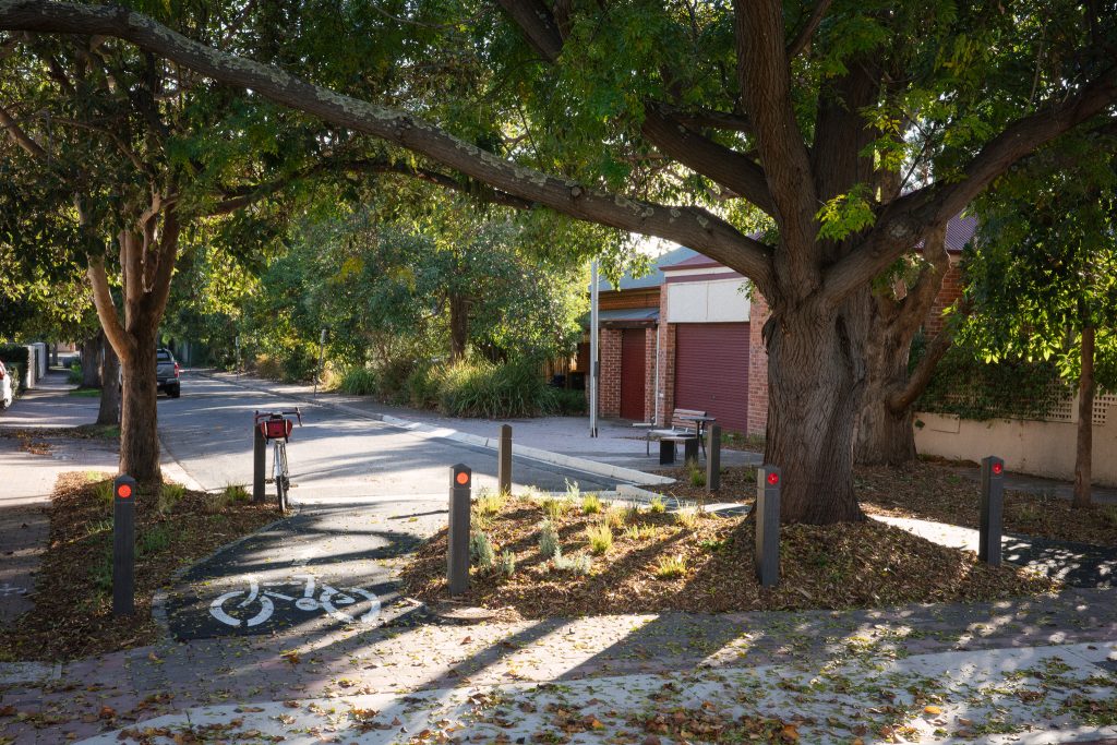 A small but meaningful improvement to the intersection of Thomas St and Mornington Rd in Unley has resolved a weak link in one of Unley’s cycling routes. Located on the Unley Neighbourhood Bicycle Route that winds its way between Unley Rd and King William Rd, navigating this intersection used to be difficult due to poor visibility and the need to go onto a steep and narrow footpath. But no longer!