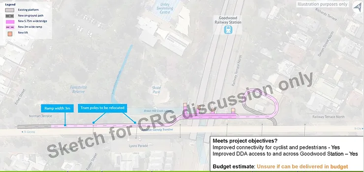 - Improve equitable access to Goodwood train station, which does not currently have compliant wheelchair access.